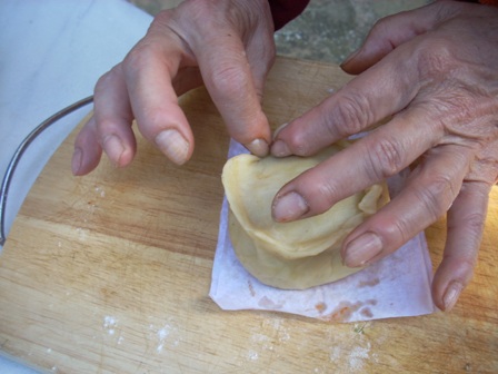 Ses panades són... Ses panades eren ¿són? la cosa més important de les festes de PASQUA als pobles de Mallorca; i així ho vivia jo. A Palma també hi havia festa, però aquests dies tenien un aire com a més de poble, amb els camps verdejant, els espàrrecs i les carxoferes apuntant el fruit, els pèsols, les favetes tendres... Quan jo era petita, sempre érem a Algaida, primer al carrer dels Cavallers, i més tard a la Roca. La Pasqua de la meva infantesa són les panades, els robiols i crespells, les caperutxes del dijous sant a Palma, el divendres sant a Algaida, el forn de can Pouer, encès per coure devers 60 panades..., ¡havien de durar fins a s’Encogema! -Que volia dir, exactament, Quinquagèsima, és a dir, la segona Pasqua, que diuen els catalans!!!! Segons la tia Margalida el divendres i dissabte sants eren dies amb ¡una feinada grossa! a les cases. Els dies de més feina de l’any!!!. Començava el dijous o divendres, amb sa matada del xot, (quins nirvis, es deixa matar sense ni un bel. Ja ho diuen: un manso cordero, deia sa tia Margalida) i seguia tot lo dia, trossejant la carn, coent la sang pel frit... les panades les fèiem el divendres a vespre, perquè estassin a punt d’enfornar l’endemà, i el dissabte al matí, fèiem els crespells i rubiols. Una vegada fet tot, venia la feina de coure-ho al forn... I hi havia una cosa molt important el Dissabte sant: no hi havia funcions religioses!!!, i això, beats com eren a ca nostra, deixava molt de temps lliure: Divendres sant hi havia l’ofici de tenebres, a les 3 de l’horabaixa, però hi anava molt poca gent -ni devíem arribar a la dotzena de persones,- les dones quedaven a ca seva, ¡amb sa feinada que hi havia!!! Jo encara hi havia acompanyat a mumpare i el meu avi: era la cosa més tètrica del mon: Tot el retaule cobert amb una tela morada, tots els sants i santcristos també tapats, l’altar sense cap adorno, poca llum, sense tocar campanes, sense música, cantant els improperis: Improperium expectavit cor meum, et miseriam... et sustinui... (Tomeu, te'n recordes?) o bé recitant allò de flectamus genua...levate... amb el capellà resant pels pérfidos judíos. I la representació del davallament, el divendres a vespre, també estava molt bé...De tètric no ho podia ser més; realment si ara hi duguéssim un nin petit es moriria de por i angoixa, i, segurament, l'haurien de dur al psicòleg, però noltros hi estàvem acostumats. Però arribava el dissabte, i tot era festa i alegria: campanes tocant, posts amb rubiols i panades cap al forn, crespells, nins cantant pels carrers... I el diumenge, amb s’Encuentro a les set del matí, la marededéu –que sortia de can Mulet-, de cal tio capellà, botant en veure el bonjesús ressuscitat, i la banda de música, i tota la plaça plena de gent... Això era la meva Pasqua!!! Encara tenc unes faldes de disfressa de pagesa que eren de la marededéu i les ties de can Marc les varen aprofitar per fer-me el vestit amb el que estic retratada, als quatre anys, a Palma. I ara era el moment de tastar les panades!!!