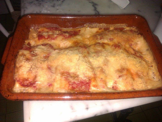• Un cop fred, omplir els canalons, cobrir-ho amb beixamel i formatge parmesà.