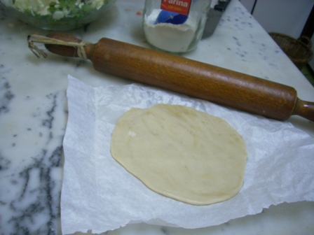 cocarrois, agafar munts de pasta -90 g- i estendre-la amb l'aprimador, fins