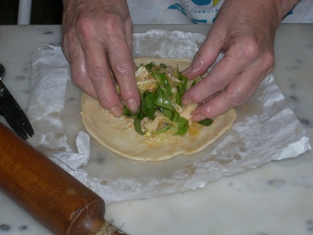 i embolicar-la amb la pasta, que giram sobre ella mateixa, tancant els costats, ajuntant-los amb una