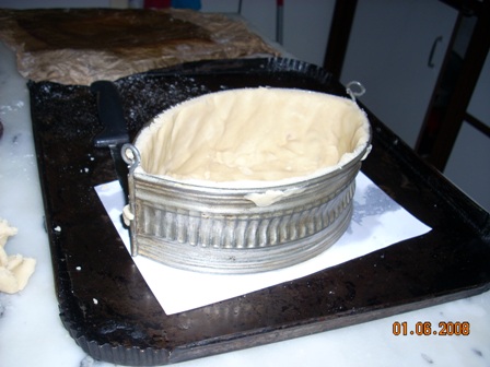 Si el que feim és pasteló, quan tenim ple el motllo, tallar pasta a mida per tapar-lo. Posar-la al damunt, ajuntar la pasta pressionant una mica, tallar la que sobresurt, i adornar-la amb figures com una flor, de pasta.