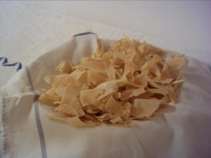 Consisteix a fer un brou a partir de carns de diverses castes: porc, pollastre, vedella... Una vegada hem fet el brou, el colam bé d'impureses. un colador fi va molt bé, i hi bullim, dins, pasta de sopa al nostre gust: Qualsevol de les que tenim a dalt, en imatges, o arròs, o sopa grossa, que se sol considerar de més festa... A ca nostra, el feim així -convé dir que és una mica híbrid, entre la tradició catalana i la mallorquina-: Ingredients: BROU: